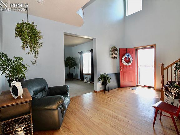 BIG, BIG, BIG! Don't miss this gorgeous 3,781 sq ft Orion on a massive 15,377 sq ft lot! This majestic 2 story has vaulted ceilings & picture windows that flood light into the grand, hard wood front entry. The bright & open great room has vaulted ceilings & two story picture windows, tile floors & a cozy fireplace. The spacious kitchen offers 9ft ceilings, wood floors, island prep space, a storage pantry, eat-in bay window area, NEW stainless range, stainless 3 door fridge and beautiful double opening french doors. The large formal dining & living room areas have fresh paint & lighted, decorative built-ins. The large second level loft has NEW carpet and breathtaking Pikes Peak views, as it overlooks the stately back stairwell & great room. Big & bright secondary bedrooms have newer, durable luxury vinyl plank floors. Wash day is a breeze in the convenient upper level laundry. The HUGE owners suite offers vaulted ceilings, a cozy window seat, NEW carpet, a huge 5 piece bath with corner soaking tub, separate vanities, luxury vinyl plank floors & a big walk-in closet. The attached 3 car garage has finished & insulated walls, high insulated ceilings, a garage door opener, an inside garage water spigot & a built in work bench & shelving. The unfinished basement provides built in storage, tons of wired lighting & a freshly painted floor. It is ready and waiting for an additional 2+ bedrooms, a full bath and a large family room and/or theater! This beauty is comfort equipped with: a high efficiency furnace, humidifier, NEW central air unit, whole house attic fan, water softener and reverse osmosis water filtration system. Save money during those cold winters with the ingenious portable solar air heater. The big, open back yard has a rock wall and zip line and can easily accommodate the outdoor space of your dreams (workshop, garden, greenhouse, pool, RV parking...) Convenient access to shopping, Fort Carson, Peterson & Schriever SFB, CS Airport & Amazon.