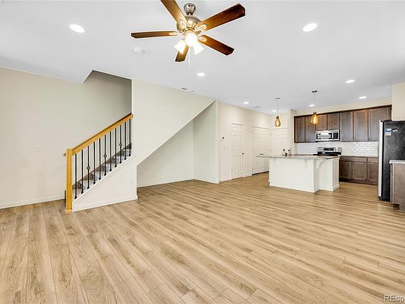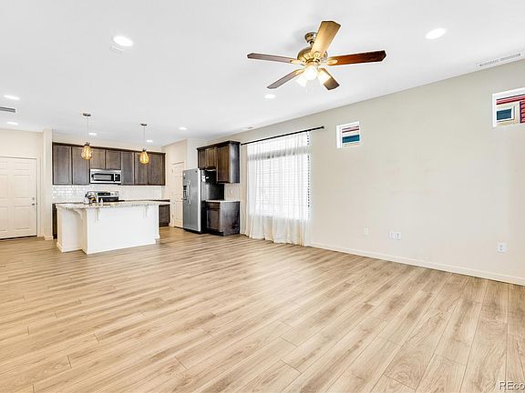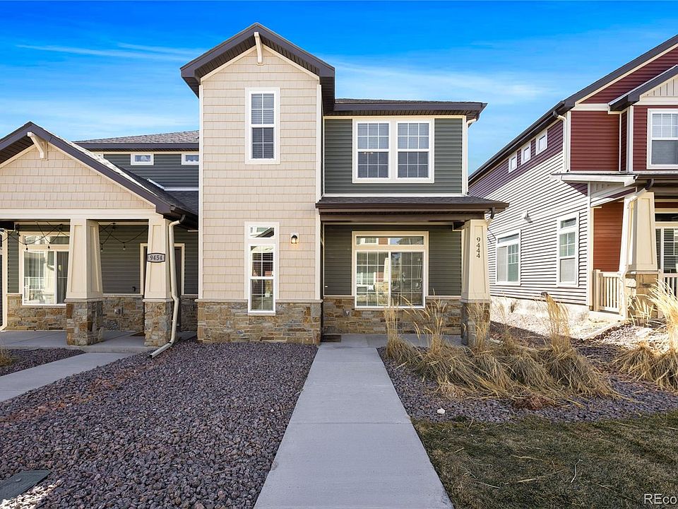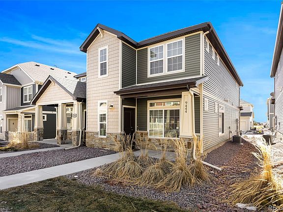 Welcome to the desirable Banning Lewis Ranch neighborhood! Newer (2020) Townhome with 3 bedrooms and 3 bathrooms. This home features modern finishes that will satisfy any Buyers desires. As you enter this Duet Townhome, you are immediately greeted with neutral interior paint tones combined with tasteful cabinetry and stunning granite countertops. The Kitchen, Dining and Great room combination provides that open floor plan that is perfect for entertaining. The Kitchen is a dream, it features a huge island breakfast bar with a sink, SS appliances, Double electric oven, but house is also plumbed for a gas stove. All the appliances are included. Main level also features a guest 1/2 bath. Interior entry from garage for that added security. The LVP flooring is perfect, it is not only durable, but color compliments all of the interior tones in the home. In the upper level you will find a massive Primary bedroom featuring a large additional sitting area and a 3/4 ensuite Primary bathroom with a stand-alone shower and a glass enclosure, a double vanity and spacious walk-in closet. Tons of natural light. Upper level also has 2 additional bedrooms and another full size bathroom. Home is wired with cat 6 for surround sound in living room and hard wired connections, ceiling fans in most rooms. The community amenities include multiple pools, a state-of-the-art workout center, and a clubhouse perfect for get togethers. Beautifully landscaped local parks in addition to walking & biking trails, waterpark and pickleball courts, and a dog park which is great place for your pet friends! Fiber optic internet! Banning Lewis lifestyle is unmatched. The schools are top rated. Summer concerts at the park and friendly community gatherings. Call this place home!