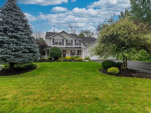 Multiple Offers Received - seller asking for best offers by Monday, 7/17 @ 5PM. This beautiful colonial home offers so much! You'll notice lovely curb-appeal as you pull up with fresh, low-maintenance landscaping, a newly sealed driveway in '23 & the 3-car garage offering a new opener on the double door & a new entry door. There is also a large iconic front sitting porch to relax upon. Walking in through the garage, you will step into a mudroom & 1st-floor laundry (washer/dryer included, dryer new in '22). The main floor offers hardwoods, convenient half-bath, large kitchen w/HUGE walk-in pantry, formal dining space, an office (not included in the bedroom count) & a great room w/soaring ceilings & a nice gas FP. All kitchen appliances are included & there is a new dishwasher ('23). There are four bedrooms upstairs including large owner's bedroom w/vaulted ceiling, GORGEOUS full bath which was totally renovated & a sizeable walk-in closet. Good room sizes throughout and don't forget Central Air, of course. LARGE basement offers plenty of space for storage or perhaps future finishing. New sump pump in 2020 which has a water backup, too. No Showings prior to Friday, 7/14 @ 8:00AM.