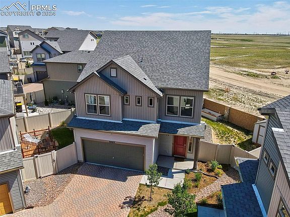 No immediate rear neighbors!!! This absolutely gorgeous home features a stunning kitchen, 3 bedrooms, a very large loft, 2.5 bathrooms, a 2 car garage, and backs to open space/no rear neighbors with great views, in the sought after Banning Lewis Ranch community! Enter through the front door with a half bath, open concept living room, dining and kitchen area, perfect for entertaining guests. Spacious kitchen provides generous cabinet storage and counter space. Kitchen also features oversized island with beautiful countertops and stainless steel appliances, and pantry. Walk through the sliding glass doors to the rear patio and deck. The second floor features all bedrooms, full bath and laundry on the same level. Master bedroom includes walk-in closet and gorgeous master bath with dual vanity. Bedrooms 2 and 3 are also upstairs with lots of light and are very spacious. The third level offers an enormous loft with many lots of flexibility. Enjoy your summer evenings barbecuing or playing games in the fully fenced rear yard with a concrete patio, extended deck, raised garden beds, and a storage shed. Rear yard has no rear neighbors and also offers great views. This fabulous home is located in the amazing Banning Lewis Ranch community with amenities galore. Walking distance to schools, hiking/biking trails, pools/parks, pickle ball courts and dog park. Community includes neighborhood schools, over 65 acres of parks/trails/open space, tennis courts, basketball court, rock climbing parks, zip-lines, access to pools, splash pad, water park, and dog park. Recreation center houses a fitness center and also regularly hosts classes and events for all ages. In the summer months, catch a neighborhood concert, festival, food trucks, farmers market or enjoy other regular community events. This community has it all.