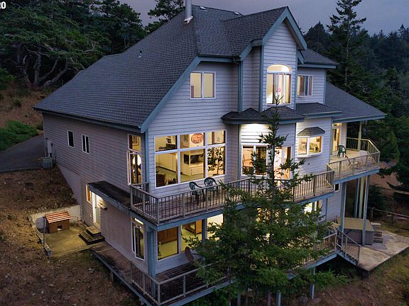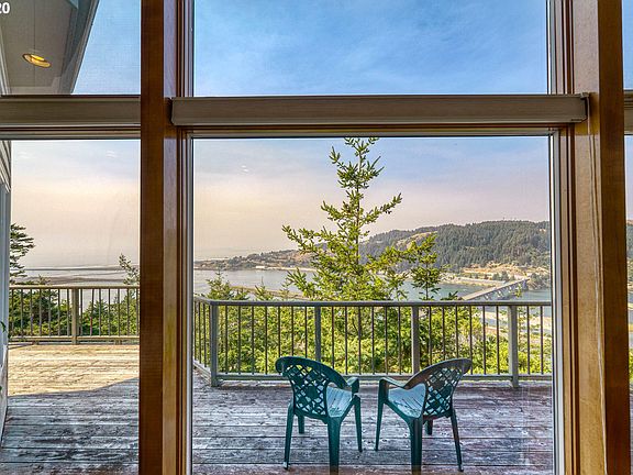 AMAZING HILLTOP HOME has commanding VIEWS of Pacific Ocean, Rogue River, Rogue Bay & Patterson Bridge! Boast 5 bedrooms/4 Baths PLUS media room, home office, den, family room, wrap around deck, oversize laundry room + storage galore. Open kitchen/family room has stunning views & fabulous natural lighting! Home is large enough to house multiple families & makes a great home away from home retreat! EXPANSIVE PANORAMIC VIEWS and a TOP of the WORLD feel! Exclusive showings by appointment.