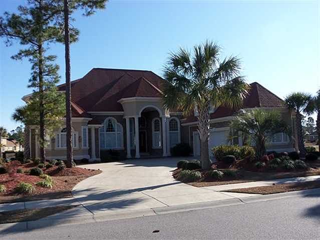 Genuine character is expressed throughout every inch of this extravagant executive home. This custom built 5BR home w/Open Floor Plan is situated on the best street in this prestigious neighborhood. This home lacks nothing with a 23ft. ceiling in the magnificent great room with dramatic water views. coffered ceilings and 10ft windows further highlight this home. The kitchen has cherry cabinets and paneled pantry. Granite counters in the kitchen, baths, and laundry. A winding staircase adds beauty to this home. Two outdoor balconies lead to your very own boat dock. From that boat dock you can travel the 15 miles of connecting lakes. This upscale community is located in the award-winning Carolina Forest school system and close to beaches, shopping, golf restaurants, medical, post office, theaters and all of the wonderful amenities that Myrtle Beach has to offer. measurements are approximate and must be verified by the buyer.