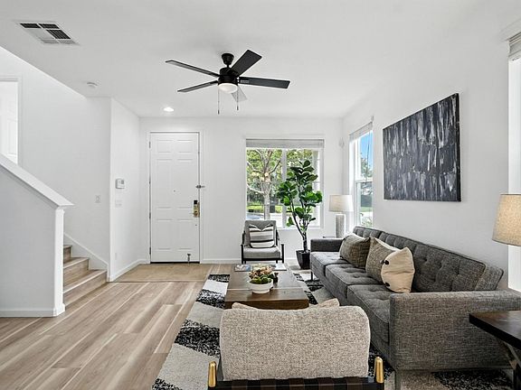 Welcome to this beautifully maintained 3-bedroom, 2.5-bathroom corner unit offering 1,528 sq ft of thoughtfully designed living space. Step into a bright and airy living room enhanced by recessed lighting, elegant light fixtures, and stylish laminate flooring throughout the main areas. The kitchen is a true centerpiece, featuring stainless steel appliances, crisp white cabinetry with ample storage, and sleek granite countertops perfect for both daily living and entertaining. Retreat to the spacious primary ensuite, complete with dual sinks, a stall shower, a relaxing tub, and a generous walk-in closet. Additional bedrooms offer versatility for guests, home office, or family needs. Enjoy the outdoors in your private backyard, which includes a storage shed for added convenience. Located near grocery stores, popular restaurants, and with easy access to Highways 880 and I-580, this home combines comfort, style, and unbeatable convenience. Don't miss the opportunity to make this corner-unit gem your new home!