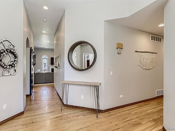 Pull up to your landscaped sanctuary in the heart of the Metro area, located in Huntington Estates just minutes away from Cherry Creek State Park. At the end of a quiet cul-de-sac, and on a large 1/2 lot! The custom-built home features a design that provides comfort, and wide open spaces and is ready for you to move in or make those few changes to make the home "yours". The stamped concrete walk takes you under a stone arch to the naturally finished wood and artisan glass front door. The large, open entry welcomes you into this home, along with a high ceiling to give you the feel of splendor and warmth. The gourmet kitchen features a large center island, open shelving, custom cabinets, and "bar" seating plus double ovens, a cooktop, a range & dishwasher. Adjacent is the dining room to accommodate larger gatherings and family get-to-gathers. As you move from the kitchen you can lounge by the fireplace in the Great room or retreat to your private office to work under the vaulted ceiling and large window views of the neighborhood. You can end each day with a fire in the main floor primary suite designed for comfort and privacy with a jacuzzi, walk-in closet, sitting area, cove ceiling, and built-ins. To finish off this floor you will find an additional bedroom with a private full bath and walk-in closet, AND no detail was skipped in the wonderful must-see laundry area! the basement features an oversized family room two large bedrooms, garden views, a spacious bath, workout area/storage/expansion. The covered patio is a relaxing getaway year-round to play, grill, or just enjoy! Fenced backyard for your children or pets to run free and relish plus a detached shed. This home features a new home solar system (please ask for details on the equipment and financing) and an in-home sound system on the main level and back patio. Do not miss the chance to make this your new home...