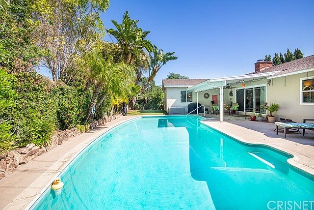 Just Listed is this Highly Sought after "Walnut Cove" Pool Home that's located on a prime cul-de-sac in Northridge. This absolutely stunning single story features a double door entrance way that leads you into this charming floorplan and features: 4 large bedrooms, 2.5 bathrooms with over 2,000+sqft. of living space, a completely remodeled kitchen from ground up that has quartz counter tops, subway tile, soft closing draws, LED lighting, under mount lighting and large tiled flooring with new sub-floors for added strength. You have true hardwood flooring in the living & dining area, a brick fireplace accented with wood paneling planks attached to it which feeds into the dining room that has a rare inside bar-be-que that's perfect for indoor grilling. You have a back bedroom that can be used for an office, guest room or extended family room with access to the backyard. The master bedroom offers two closets and an updated bathroom with back views of the pool area. A very private backyard is what everyone will enjoy this summer and is accented by a large covered patio, a heated pool and a grassy area for the kids to play on. There is an inside laundry area with access to the side yard and a half bath. Other major improvements that have been done over the years are dual pane windows in the entire home and sliding glass doors, copper plumbing, 7 ceiling fans in the home, central heat & air plus an updated 200 amp electrical panel perfect charging your car at home in the 2 car garage. Nothing else compares to this home in the area so don't wait to call this your new home.