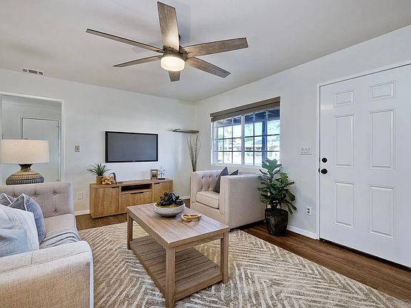 Light, bright, and beautiful! Step inside and enjoy the fresh paint and luxury vinyl floors throughout. The brand new kitchen features white shaker cabinets quartz counters, and stainless steel appliances. Central heat and air and dual-pane windows throughout. Attached two car garage with epoxy flooring and an oversized shed in the backyard for plenty of storage. Low-maintenance backyard with large patio and turf yard. Freshy painted exterior. Electrical and gas available for outdoor kitchen/bbq and spa. Shed also has elecrical available.