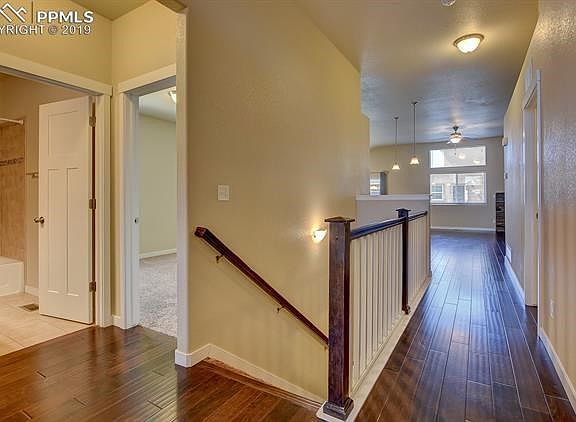 Open 5 bed/3 bath/3 car floor plan!!! Beautiful large kitchen w/ granite counters & 42" cabinets. Engineered hardwood floors on main level to include the master bedroom, gas fireplace, front and back landscaped & fenced and AC to keep you cool in the summer. Large secondary living room in basement great for movie nights or entertaining guests. Oversized basement bedrooms, one w/a walk in closet the other w/ double closets. Large 3 car garage! Located conveniently close to Ft Carson. New roof in Oct 2018