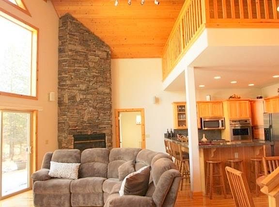 CHALET STYLE HOME AT THE RUNNING Y WITH TWO MASTER SUITES LOCATED ON THE 14TH GREEN. THE HOME BOASTS HARDWOOD FLOORS, WOOD CEILING, AND WOOD INTERIOR DOORS PLUS A FLOOR TO CEILING WOOD BURNING FIREPLACE. THE UPSTAIRS OPEN LOFT POSSIBLE 4TH BEDROOM WITH A CLOSET AND PRIVATE BATH. LOCATED ON A CUL-DE-SAC, ADJACENT TO PAVED WALKING PATH THAT ENCOMPASSES THE BACK NINE OF THE COURSE. ENJOY THE COMMON AREA TO THE REAR AND THE MANICURED GREEN AND MOUNTAINS VIEW. VERY WELL MAINTAINED VACATION HOME.