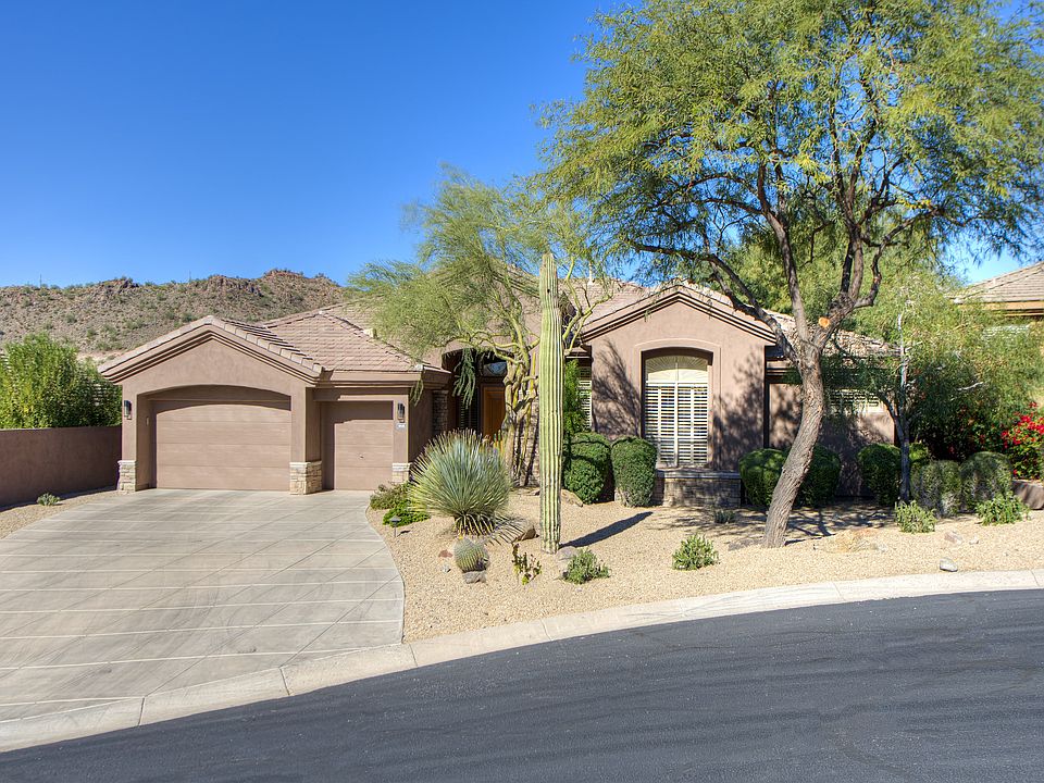 It's rare when you can own a property that has had such meticulous care. Sometimes builder owned homes have the little extra's that add up to huge value - and that's the case with this Sunset Ridge residence! Set on nearly half an acre in the prestigious guard gated community of Eagle Mountain, this almost 3700 square foot home features the unique open design that is so sought after. All the behind the scene items such as 2 New Trane AC units and outdoor designer paint have been attended to for your comfort. Simple elegance at the core, this home has beautiful neutral tile and carpet on the floor. Recent designer paint displays grey tones on the walls. Granite and like new cabinets in the kitchen and master bedroom closet provide storage and utility.The open floor-plan features a huge master suite and family room. Large picturesque windows will keep the home bright and enable you to enjoy our AZ sun and sunsets. As you unwind surrounded by the pulsating jets of the Martini Pool, or sip a glass of cabernet next to your flagstone fire-pit, you will notice this serene setting is located on the 9th hole of the Eagle Mountain Golf course. You'll share this perfect city lights, golf course and mountain view hideaway with only those you hand select for your private sanctuary. The owner just installed a brand new built-in grill and granite counter-top, if you consider yourself a grill-master you will love this. The terrific aesthetics and sound of the stone water feature brings the outdoor ambiance all together. There are so many extra's included in this like new home, if it's the first stop on your shopping list - it will likely be your last! Come have a look, you'll be happy you did!