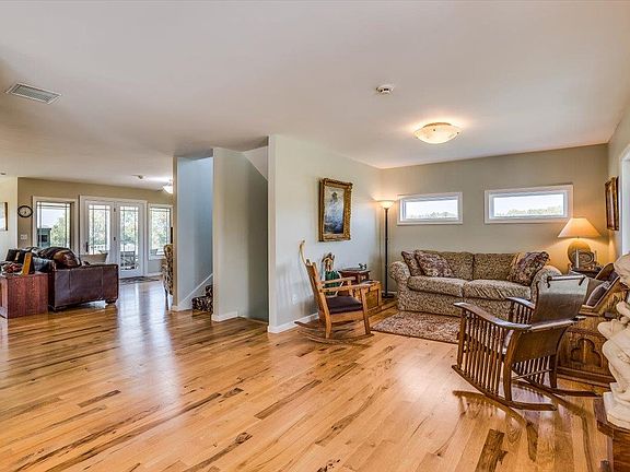 Escape to your peaceful sanctuary just 2 1/2 miles south of Udall, nestled on nearly 40 acres of secluded bliss. This meticulously cared-for home, crafted in 2005, radiates craftsmanship and attention to detail in every corner. Upon arrival, you'll be welcomed by an inviting covered farmhouse front porch, setting the tone for the serenity that awaits within. The interior is bathed in natural light, courtesy of all-new Pella windows, highlighting the hickory hardwood floors that grace the living room, formal dining room, and family/hearth room. The kitchen seamlessly connects to the family room and casual dining area, showcasing exquisite granite countertops, stainless steel appliances, and a generous pantry. The primary bedroom and bath provide a touch of luxury with a quarts vanity boasting and a spacious white subway tile walk-in shower. Upstairs, two guest bedrooms and a guest bath offer comfort and convenience. The lower level boasts a generously sized family room, a fourth bedroom, a third full bath, and a versatile bonus room, ideal for pursuing crafts or hobbies. Step outside through beautiful Pella French doors onto the shaded Trex deck, perfect for savoring scenic views while enjoying your morning coffee. This property also features two impressive outbuildings. The first is a well-designed 30' x 60' metal structure, cleverly divided into two sections. One half is currently utilized as a woodworking shop, complete with heating, air conditioning, and insulated walls and ceiling. The other half boasts a 16' x 12' overhead door with a garage door opener, making it an excellent space for equipment storage, complete with its dedicated 200-amp service. The second outbuilding is a meticulously sheetrocked 24' x 24' frame construction detached garage, featuring a 12' x 10' garage door with a convenient opener, perfectly accommodating today's oversized pickup trucks. This space also offers upper-level storage, heating and air conditioning, and a 200-amp service panel. The front 17 acres are leased and planted with milo, while the beautifully landscaped grounds surrounding the home include an irrigated garden and fruit trees, all effortlessly maintained by a sprinkler system. Escape the hustle and bustle, unwind, and immerse yourself in the tranquility of country living, all while watching deer and wild turkeys roam the picturesque landscape. The time has come to claim this idyllic retreat as your own.