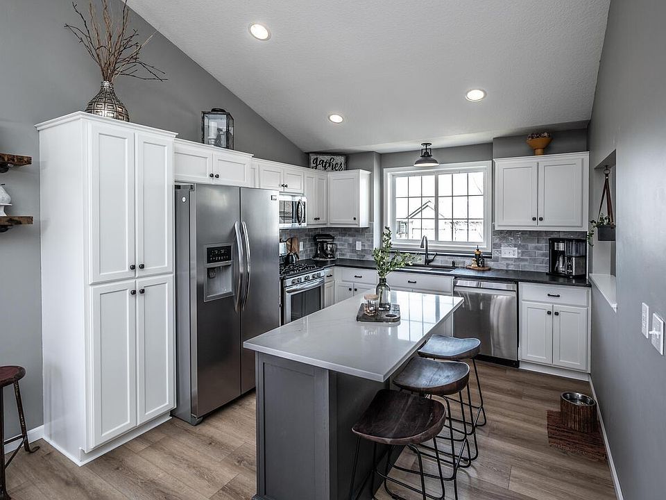 Better than new construction in every way! This expertly remodeled two-owner home is located in the popular Boulder Pointe neighbor. This split level layout offers an oversized entry is open and airy with large windows that allows for plenty of sunlight. The airy, open upper level features kitchen, dining and living areas with a vaulted ceiling. Tasteful, durable new flooring throughout. The owners suite includes a remodeled and appointed private 3/4 bath. The lower level includes two additional bedrooms, cozy family room with fireplace, office workspace, and custom bath with ceiling shower. Finished off with a new 10X10 maintenance-free deck and perennial landscaping to enjoy the neighborhood pond, this home is a cherry in the Lakeville School District. Newer furnace, AC and roof