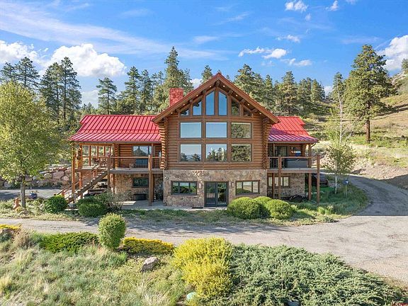 Listings say their home could be in a magazine, but guess what? This one actually was! Tucked just moments away from the county road 502, within 39 private acres of tall pines and open meadows, this Swedish-coped log home is a masterclass in timeless log construction. Designed for those who value peace, privacy, and presence in nature, yet still want refined finishes and comfort. A winding freshly graveled drive leads through mature Ponderosa pines to a residence that blends into the landscape with grace and strength. Recently re-chinked and stained, the exterior is fresh and cared for, while the standing seam metal roof offers durability with like-new appeal. A leveled pad is already in place, perfect for adding a shop, guest quarters, or simply expanding your vision. Inside, light pours in through windows that frame long-range views across the Florida Mesa and deep into New Mexico. The main living space centers around a floor-to-ceiling moss rock fireplace that adds a warm, grounding element to balance the soaring ceilings and open design. Every detail inside has been carefully selected, from the rich knotty alder cabinetry to the slab granite countertops and quiet luxury appliances. The chef’s kitchen includes a Viking 6-burner range, Bosch dishwasher, a warming drawer, and a massive maple butcher block island capped with chiseled-edge granite that invites guests to gather and linger. Entertain indoors or out with over 1,000 square feet of covered Trex deck, accessible right off the kitchen and dining area, ensuring seamless flow even when the weather turns. The layout flows naturally across three levels. A guest bedroom and bath offer privacy on the main floor, while the upper level is dedicated entirely to the primary suite, complete with dual vanities, an oversized steam shower, and a generous bonus space ideal for an art studio, nursery, or personal sanctuary. A custom railing overlooking the living space adds an artistic touch that elevates the home's design. Downstairs, the walkout level includes a second rock fireplace, a full wet bar with fridge and icemaker, an additional bedroom and bath, a sauna, and even a cozy wine cellar. Whether you’re hosting family for the holidays or enjoying the stillness of your own company, the space feels balanced and intentional. The deep garage provides ample room for oversized vehicles or hobby storage, and the mechanical systems are clean and efficient with in-floor radiant heat and a high-producing private well with clear water tests. Outdoors, a lined seasonal pond offers a summer haven for wildlife and quiet reflection. With no covenants in place, this land invites freedom, freedom to hunt, shoot, explore, or simply enjoy the sweeping vistas from your own personal sanctuary. Offered furnished less personal exclusions and located just 12.8 miles from Durango, this is the rare kind of home that supports a lifestyle, not just a residence. Here, the log craftsmanship is unmatched, furniture is perfect, the setting is irreplaceable, and the lifestyle is pure Colorado. Welcome home.