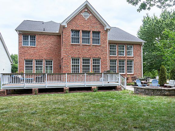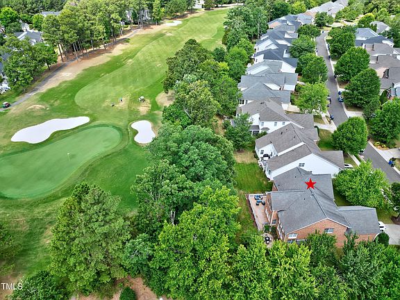 On the golf course! Welcome to this stunning all brick home perfectly situated with a view of the 12th green at the Brier Creek Country Club. This residence was designed with many updates, including elegant crown molding, bay windows, tray ceilings, an extended deck and patio with firepit, making it a perfect blend of luxury and comfort. Natural light fills the space in this 4 BD/3.5 BA home. Enjoy the warmth of hardwood floors throughout the main living areas. The vaulted, two-story foyer creates a grand entry, leading to the open living and dining rooms. The first-floor office features a built-in bookcase, providing an ideal space for work or study. The vaulted family room, with a gas fireplace, offers a cozy yet expansive space for gatherings. The spacious kitchen includes an island, pantry, granite countertops, SS appliances plus a large eat-in area overlooking the beautifully landscaped backyard. Laundry room has storage, cabinets and sink conveniently located near garage entrance. Second floor landing provides a comfortable transition space between bedrooms. The primary bedroom features a dramatic tray ceiling and 2 walk-in closets. The en-suite bathroom includes a double vanity, water closet, garden tub, and shower. Generously sized secondary bedrooms have ample closet space. Walk-in attic storage. Your living space is multiplied with the extended deck leading to a patio area and fire pit, perfect for entertaining and enjoying the breathtaking views of the golf course. This home combines elegance with functionality, offering an unparalleled living experience in the prestigious Brier Creek Country Club.