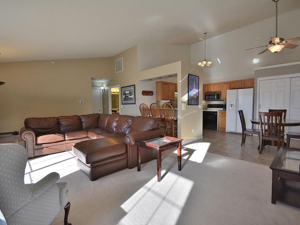 Situated in a quiet, serene setting is this rare 2 bedroom, 2 bath upper unit condo filled with lots of natural light. Enjoy the beautiful pond & nature setting from your balcony. Private entrance, open concept, vaulted ceilings, plenty of storage, attached garage, new roof in 2015, newer water heater, washer & dryer. Kitchen with snack bar, pantry, tile flooring and back splash is open to large living room with desk nook. Spacious BDRMS including master with en suite bath. 2nd bedroom walks through to another space that could be an office or additional storage. 2 cats or 1 dog ok.