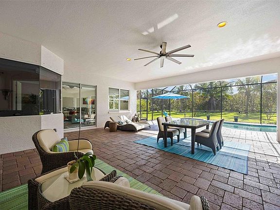 Screened extended lanaiHeated saltwater poolGranite countertopsVaulted tray ceilingsEpoxy-coated garage floorsLushly landscaped yardLighted spa