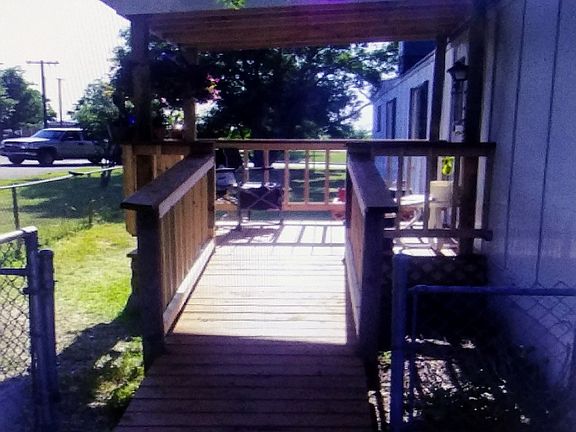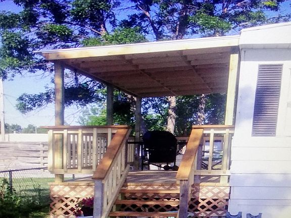 Its an older mobile home but it has lots of upgrades... New porches on the front & back, new Pergo flooring in the kitchen, hallway, & bathroom... New handicap accessible walk in shower... Fenced in yard... Rv hook up & dump... Storage shed... Corner lot