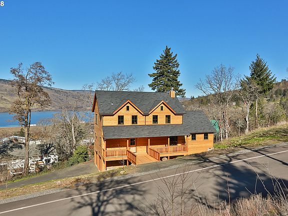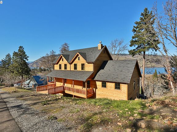Beautiful new Mt. Lodge style home in Mosier with romantic views of the Columbia River just a short stroll to the quaint town of Mosier. The home boasts 4 bd. 3 baths on 3 levels. The garage is the 1st level with a mechanical/ storage room plus a "walkin" crawl space The home has high ceilings and bedrooms have vaulted ceilings & river views. The master is on the main and there is a second master upstairs plus 2 bedrooms & a 3rd bath.