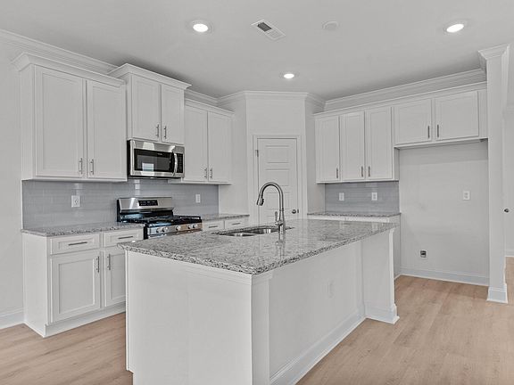 Built by McKinley Homes, now offering a builder promotion! In the Heart of Downtown with Single Family Homes, Townhomes, Swimming Pool, Amenities Center & Commercial Space! Inside City Limits with City Water & Sewer! Minutes away from Dining, Shopping & Joyner Park! END UNIT Townhome w/2-CAR GARAGE! Stairs w/open railing & wrought iron balusters! Kitchen: offers 42'' Custom Cabinets w/crown molding, soft close doors & brushed nickel hardware, granite countertops, subway tile backsplash, stainless sink w/brushed nickel faucet, huge kitchen Island w/breakfast bar, ss appliances, crown molding, recessed lighting & pantry! Separate Dining Area! Family Room: LVP flooring, Linear electric fireplace, custom accent wall, crown molding, ceiling fan w/ light & recessed lighting! Owner's suite: features double trey ceiling w/crown, plush carpet, double window, ceiling fan w/light & huge walk in closet! Owner's bath: tile flooring, dual vanity w/granite countertop, tile surround walk in shower & separate water closet. 2nd floor Loft! Blinds included!