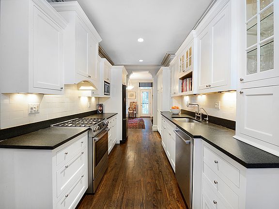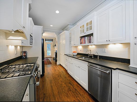 Classic brownstone on one of Hoboken's most coveted and picturesque blocks. This elegant 4 bedroom, 3 bath townhouse has the perfect blend of modern renovations and historic details throughout. Updated kitchen with custom cabinetry, stainless appliances (Bosch, etc.) granite countertops, subway tile, and generous banquette/seating area. Living room features a gas fireplace and custom built-ins, leading to the beautiful landscaped garden. Charming details include original marble mantels and doors, high ceilings, plaster medallions, moldings, and pocket shutters. The garden level features a playroom, full bath, and storage room. Central air, new washer & dryer conveniently located on top floor in walk-in closet. Just moments from shopping, dining, parks, schools, parking and NYC transportation. A true turnkey gem in Hoboken's best neighborhood.