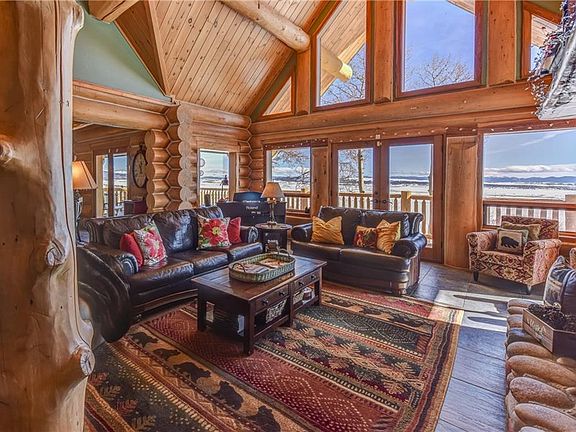 PRICE REDUCED!! Legacy log home nestled into the aspens on 38.5 AC bordering 87,000 acres of US National Forest. 180 degree mountain & valley views over the South Park. Ultimate privacy to immerse yourself in this sanctuary of nature. Welcoming, social floor plan ideal for full time use or as a mountain retreat to relax. Attached caretakers apartment. 3 car garage & shop. Wildlife abounds. Paved Rd access. 45 minutes to Breck, 1.5 hours from Denver Metro. Approx. 2 hours from COS or DEN airports