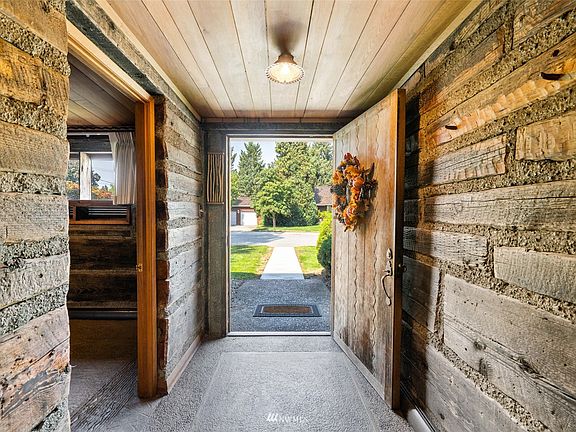 Norwegian architect Rolf Eskil designed this home for his family using methods from Norway & Frank Lloyd Wright influences between 1955-1957. Stamped concrete floors, roughhewn wood beams & aggregate concrete walls compliment beautiful, milled wood cabinetry & kitchen table. Four bedrooms or three with den, two bathrooms are smaller & typical of 1957. Lovely backyard, quiet patio & hot tub area. New roof installed in July, water is scheduled to be back on!