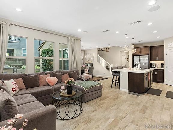 This former model home in the Village of Escaya has just about every upgrade you can imagine. Paid off solar panels to help offset your electric bill, tankless water heater, beautifully landscaped back and front yards, stunning custom tile in the kitchen and every bathroom, full bedroom and bath downstairs, accent lighting in both front and back exteriors, and additionally added accent lighting throughout the interior, large walk-in primary closet and built in garage storage with epoxy floors, this is one of the most desirable homes in Escaya. The backyard has a gas plumbed built in BBQ next to the beautifully built California room. This is one of the most stunning homes in East Chula Vista and you would love to call it "home."