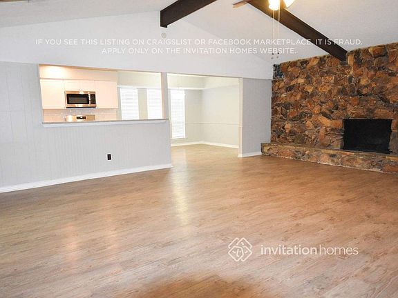 Home Features and Amenities: Air Conditioning, Fenced Yard, Fireplace, Granite Countertops, Long Lease Terms, Luxury Vinyl Plank, Patio, Pet Friendly, Recessed Lighting, Smart Home, Stainless Steel Appliances, W/D Hookups, and professionally managed by Invitation Homes.