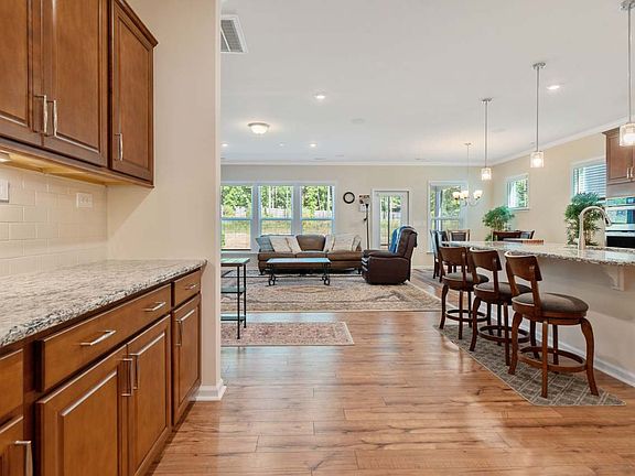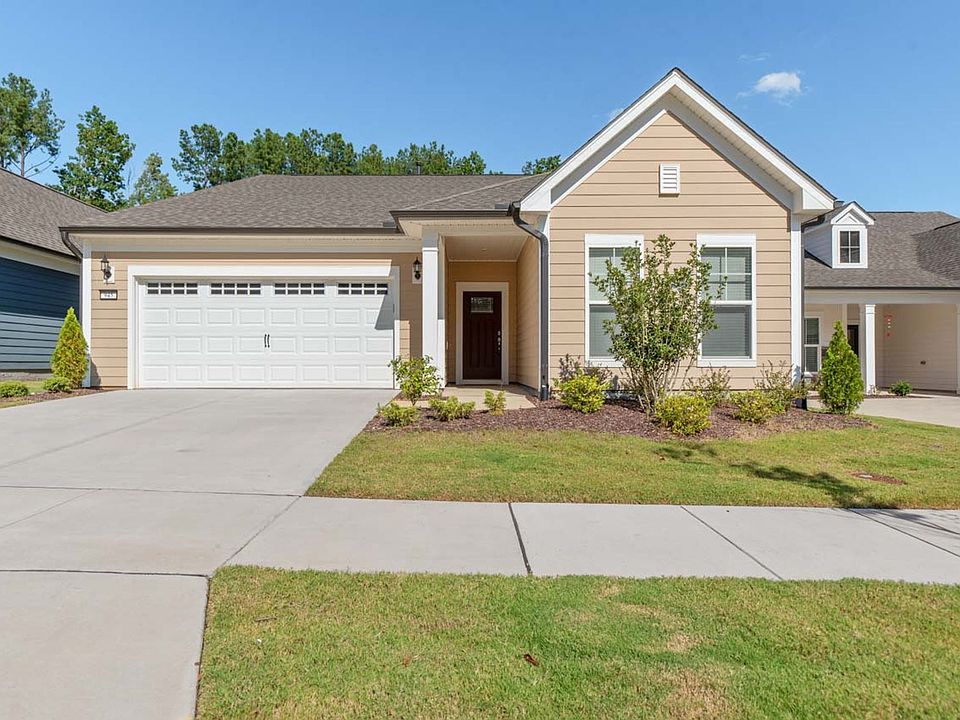 Beautiful, home in the 55+ active adult community of Del Webb Traditions, Wake Forest! East Way Ranch floor plan, with single level living and no stairs to climb. 3 bedrooms, 2.5 baths (3rd bedroom can be an office as well w/french doors). LVP flooring throughout with carpet in both bedrooms. Screen porch overlooking private backyard. 2 car garage with storage space! Upgraded kitchen with granite counter tops, SS appliances and laundry room with washer/dryer hookups. All landscaping and lawn maintenance completed by the HOA. Access to the Amenity Center included which has a fully equipped gym, indoor pool, coffee bar, catering kitchen, varsity room, activity rooms, dance studio, and much more. In addition the rear patio includes an outdoor fireplace and kitchen with two gas grills. On an average day, you can find a wide variety of activities taking place, from Aqua Aerobics Classes to Poker and Zumba. So many more clubs and activities. No smoking and pets allowed on a case by case basis with owner approval. At least 1 renter has to be 55 years or older.