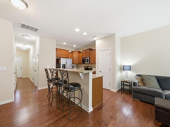 Welcome to 945 Consortium Drive, a beautifully maintained townhome in one of Raleigh's most convenient and rapidly growing areas. Offering a blend of modern finishes, open living spaces, a one car GARAGE and easy access to dining, shopping, and recreation, this home delivers comfort and connection in all the right ways. The inviting foyer opens into a spacious main living area designed for both comfort and style. Hardwoods throughout the first floor. The living room features large windows that fill the space with natural light, creating an ideal setting for relaxing or hosting guests. The open flow leads into the kitchen equipped with stainless steel appliances, granite countertops, a generous island with seating, abundant cabinetry, and sleek fixtures. Upstairs, the primary suite offers a peaceful retreat complete with a WIC and a private en-suite bathroom featuring dual vanities and a spacious shower and separate tub. Large second bedroom is well-sized and versatile — perfect for guest room, a home office, or fitness space. A full hall bathroom is attached. The laundry room upstairs keeps daily routines simple and efficient. Charming curb appeal welcomes you home with attractive siding and well-kept landscaping. A private back patio area provides room for relaxing and an outside storage room. The home is minutes from local cafés, casual dining, grocery stores, and boutiques. Also close proximity to Lake Wheeler Park, Anderson Point Park and the Neuse River Greenway for the outdoor lovers. Quick access to US-401, I-40 and downtown Raleigh.