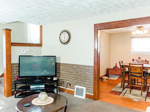 The large, freshly painted front porch welcomes you inside to the spacious living room, featuring a ceramic entry. Pass through the dining room with its recently installed wood/laminate flooring and bold trim. From there you can access the kitchen, which features newer ceramic flooring, cabinets, countertops and sink. Head downstairs to the partially finished basement boasting glass block windows, carpet and a drop ceiling with recessed lighting. The unfinished portion houses the newly installed furnace (2019), shower and laundry hook-ups. On your way back upstairs swing outside through the backdoor and onto the vinyl/composite decking where you'll find a fully fenced in back yard and propane fire pit/table stand. As you head back inside and make your way upstairs to the second floor you'll find the bathroom offering new plumbing, large storage/linen closet, cast iron tub and newer vanity/sink. Both bedrooms, bathroom, dining room and living room have been freshly painted. The exterior features vinyl siding which has been well maintained, newer windows (2017) and a detached, single car garage.