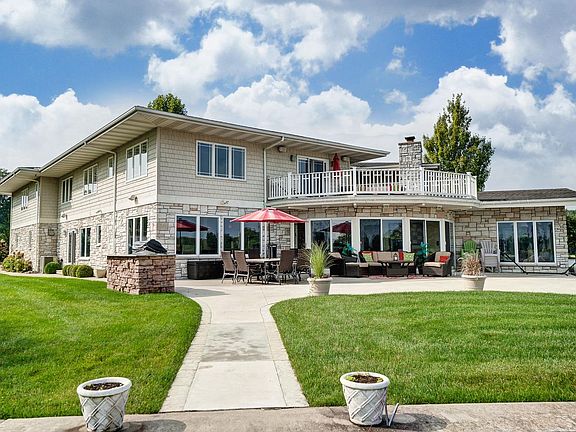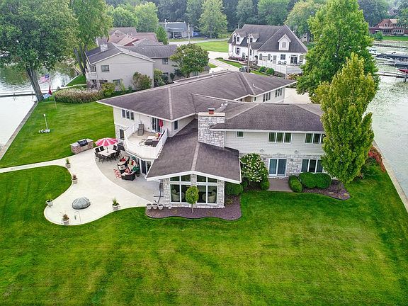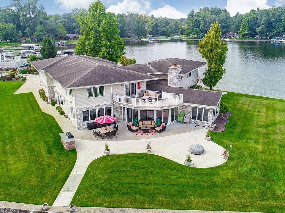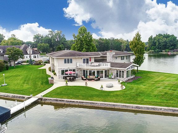 A rare opportunity to own a home on one of the most sought after streets on Winona Lake, Country Club Lane. This spectacular residence grants you over 600' of waterfront on the prominent Winona Lake with a private peninsula setting. Escape the busyness of the outside world at your own year round getaway featuring over 6,200 finished sq. ft. with spacious living areas, five bedrooms, four full baths and two half baths. A capacious floor plan masterfully designed with both entertainment and comfort in mind to make the most of the lake lifestyle. This picturesque home offers both formal and casual living areas with gourmet kitchen complete with granite counter tops, island & breakfast bar, ample cabinetry and access to the lakefront sun room with unobstructed views of the lake. Nearby, you'll find the great room with stone fireplace + adjacent formal dining room. Just off the kitchen is one of the family rooms with fireplace and custom built-in bar. Main level master suite is with spectacular lake views is conveniently located just off the office area with a spa-like bath featuring granite, double sink vanity, jetted tub and tile shower. Upper floor showcases additional living spaces including a rec room, family room + four bedrooms, baths and access to the lakeside balcony! Enjoy living lakeside at the impressive #945CountryClubLn and all that this unparalleled location has to offer. Close to schools, town conveniences, and the beautiful Village at Winona with shops, dining, trails, splash pad and so much more!