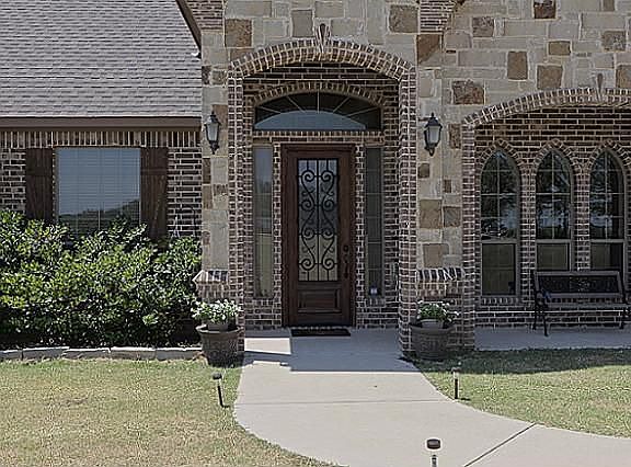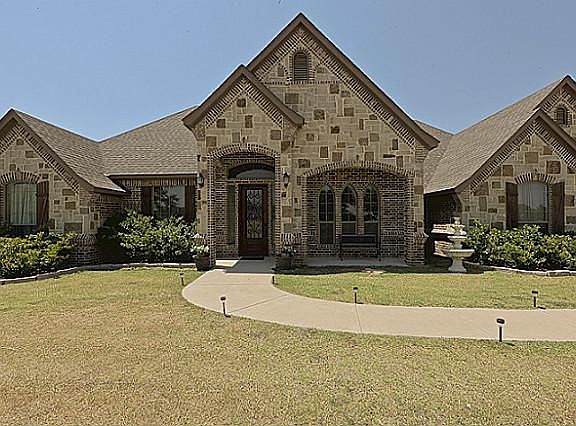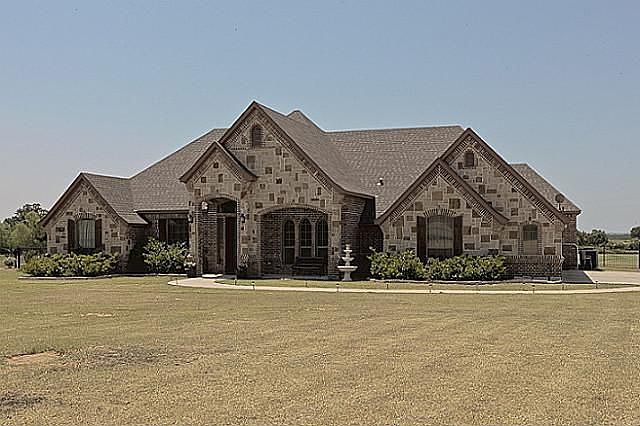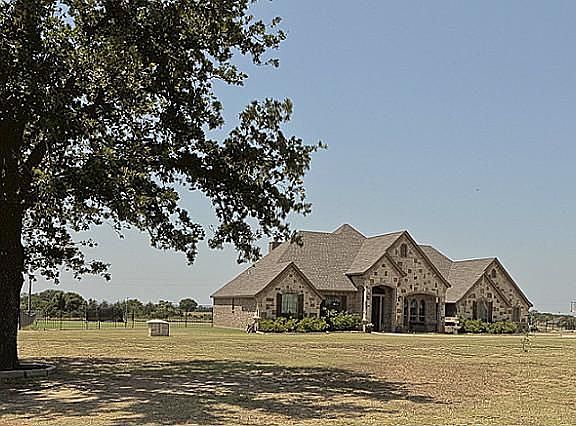 Incredibly beautiful custom home which sits perfectly on 2 fenced acres. The grand entryway greets you with 14 ft ceilings and custom tile work. Crown molding & 10 ft ceilings through out the rest of the home continue the luxurious design. French doors open to the study with built in oak desk, bookshelves & scraped wood floors. Kitchen features rock & brick design with stainless appliances. Open concept floor plan with large covered back patio