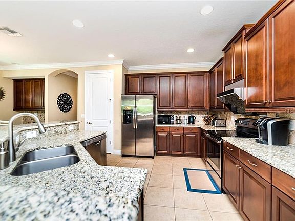 This ideal Reunion golf Pool vacation home with both golf course and conservation views! Beautifully furnished and decorated in a bright and modern style. All 5 bedrooms are MASTER SUITES including 1 Micky THEMED BEDROOM. THREE RECREATION AREAS! This spacious 5 bedroom 5 1/2 bath home located on a conservation area has it all! It has an open and airy concept overlooking the pool. This home is perfect for entertaining friends and family. The large gourmet kitchen with granite counter tops and stainless appliances overlooks the family room complete with flat screen TV and plantation shutters. This spectacular home has a large master suite with an equally amazing view off the balcony to the conservation area. It has a large closet, many upgrades and a gorgeous master bathroom featuring dual sinks, dual cabinets, a makeup vanity and a walk-in shower. Additionally, there is a second master suite, 3 more bedrooms and 4 full size bathrooms. The salt water pool is complete with a relaxing waterfall feature, built-in spa and light feature. The pool can be heated by either propane gas or solar heating. This home is gorgeous, move-in ready and immaculately clean. A superb location, Reunion is close to shopping, restaurants, bike trails, schools, 10 mins to Disney World and approx 25 miles to Orlando. Owner Pay HOA. Tenant cover utilities and rental insurance.