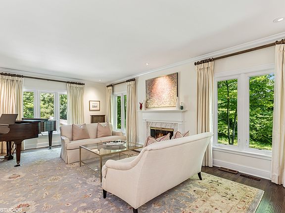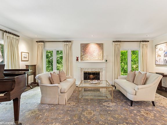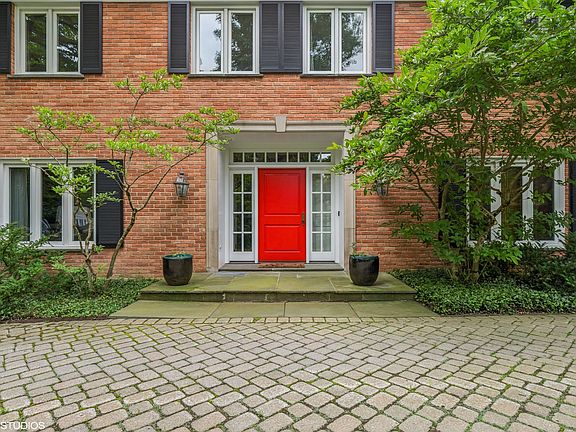 Welcome to this beautifully appointed residence in a prime Lake Forest location, just moments from the lake. A classic center entrance opens to a welcoming foyer, setting the tone for the home's warmth and sophistication. To the right, a handsome library with rich wood paneling and large windows offers an inviting spot to read or work, overlooking the front yard. To the left, the spacious living room features a fireplace and expansive windows that fill the space with natural light. The dining room showcases an expansive glass wall overlooking the yard, seamlessly connecting the indoors with the outdoors. The updated kitchen is the heart of the home, boasting a long, thoughtfully designed island that provides both walk-through convenience and a casual sitting area. The adjoining breakfast room, accented with built-in shelving, flows into a charming sunroom with a beautiful wood ceiling-creating an open, airy atmosphere perfect for gatherings. A full bath completes the main level. Upstairs, five bedrooms offer flexible living options. The primary suite impresses with floor-to-ceiling windows and a spacious ensuite bath. Four additional bedrooms and two full baths complete the level, with the option to use one room as a home office. The finished lower level extends the living space with a recreation room, wine cellar, and generous storage. Outside, the backyard provides a serene retreat with mature trees for privacy, two separate patios, and abundant space for relaxation or entertaining. This exceptional home combines timeless design, versatile living spaces, and an unbeatable location - offering the perfect blend of comfort and convenience.