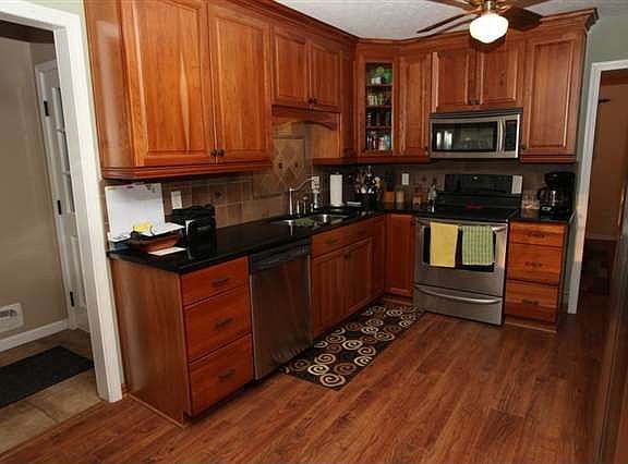 Kitchen has been completely remodeled with granite counter tops, cherry cabinets, stainless appliances and laminate flooring. Hall bathroom has also been completely remodeled. Updated utility room and half bath. Fenced yard and two, floored, attic space areas.