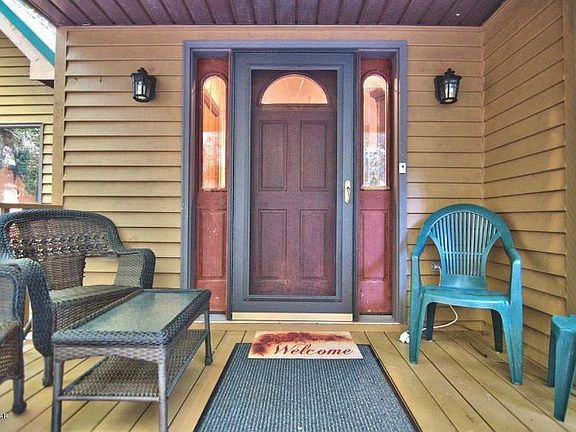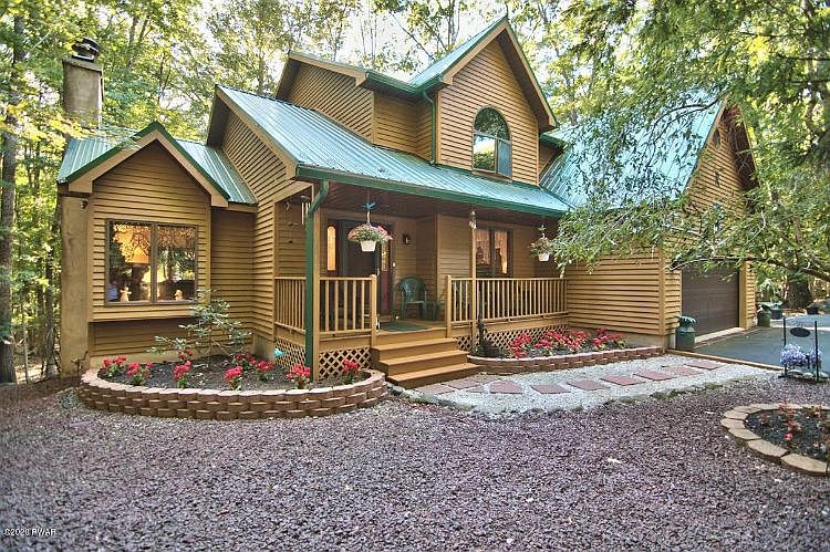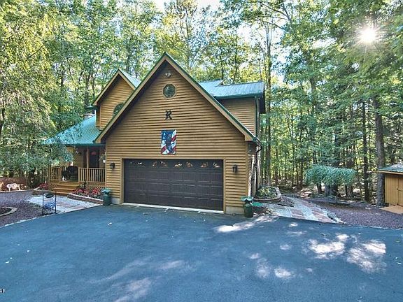 This beautiful Cedar sided traditional home on almost 5 acres has it all! Walk into a lovely living room with cathedral ceiling and a stone floor to ceiling fireplace. The eat in kitchen has so much space for your family but there is even a formal dining room. Extra large master with a huge walk in closet and 2 more spacious bedrooms. The lower level offers a wonderful family room with a wood burning fireplace. There is storage galore and also an office. New deck 53x12 w hot tub and covered front porch will give your family and friends a lot of space to enjoy. The property is perfect for the hunting enthusiast, right out of your back yard. Enjoy nature at its best. Central air and propane heat! This home has been lovingly maintained by the original owners! Close to Lake Walenpaupack!