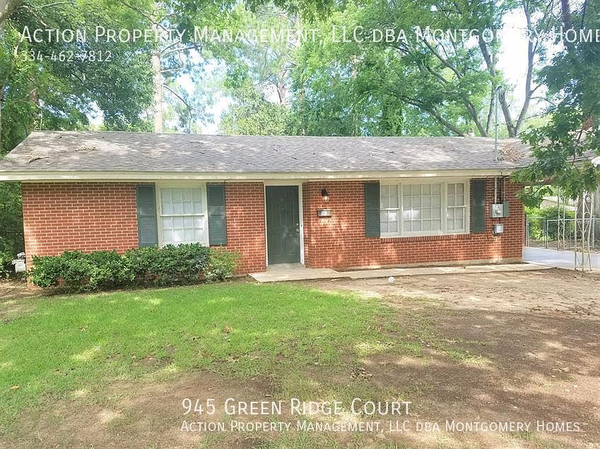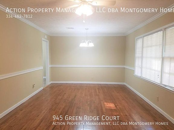This 1038 square foot single family home has 3 bedrooms and 1.0 bathrooms. This home is located at 945 Green Ridge Ct, Montgomery, AL 36109.