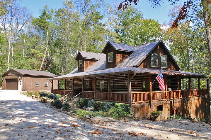 Gorgeous Red Cedar Sided Log Home w/ Serene Setting and Magnificent Mountain Views. Custom Built in 2010 this home was constructed with outstanding craftsmanship. Featuring 3BR's all having a Private Bath, A Large Open Kitchen, First Floor Master w/ En Suite, Laundry on Main Level as Well as a Half Bath. Lg Open Loft w/ Bedroom and Private Bath on 2nd Level and Optimal Views of Living Area Below. Basement is finished with a Wet Bar, Family Room, Bedroom w/Private Bath and a LG attached Workshop/Garage. All situated on 11.42 +/- acres with a 1 mile 4 Wheeling trail. Bring your Boat! You are just minutes to the boat ramp and you have a Lg Detached Garage for Storage. Very Private yet minutes to town.