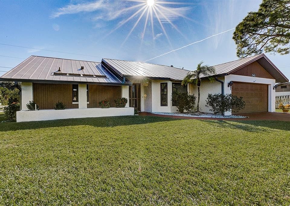 Pride of ownership is evident the minute you arrive at this property. This beautifully manicured home is built on a three lot parcel and is landscaped in a way that provides total privacy. The pool has been resurfaced and has all new pavers. This split bedroom plan allows you and your guests to enjoy total privacy. A few of the many upgrades include a new metal roof, impact windows, hurricane protection for all the sliders, two totally updated bathrooms, and new carpeting. The exterior of the home was painted just 1 year ago. There is a large shed for storage complete with electricity. This home is not in a flood zone and does not require flood insurance. The location is convenient to all that the area has to offer including, beaches, shopping, theaters and more.