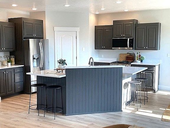 BEAUTIFUL, REMODELED HOME IN MAPLETON. This 4 bedroom, 3 bath home is located at the end of a quiet street in a charming neighborhood and provides 2,702 square feet of Main Floor living. The one-third acre lot has a large front yard, 3-car garage, and separate side driveway for ample or RV parking. Beautiful chandeliers welcome you into a large entry space. The Primary suite is enormous and comes with his and hers closets, a large free-standing bathtub, and a built-in vanity. New carpet, LVP and tile flooring as well as quartz countertops throughout.. The kitchen has beautiful all new stainless-steel appliances (refrigerator, range, microwave, and dishwasher). New front landscaping. Located at 945 N. 1140 West in Mapleton. Please text 801-694-6480 for showing. No agents please.