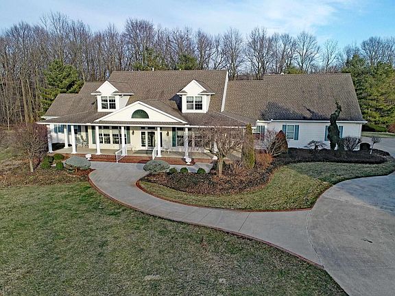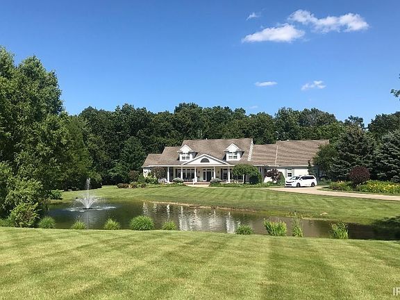 NEW PRICE - $549,000!! So gently lived in, and beautifully maintained, this remarkable country estate, with manicured lawns, charming lighted pond with fountain, and circular drive, has been beautifully designed, constructed, and perfectly cited on an idyllic 2 1/4 acre quiet gem of Indiana land. Just a few hour drive from several major northern Midwest cities. 15 minutes from famous Shipshewana, and minutes from shopping and services in Lagrange. From the show-stopping glass front door/sidelights, to the vaulted elegance of the great room, complete with classy fireplace, and theater sized entertainment alcove, the upper level mezzanine, to the banquet sized formal dining room leading to the fantasy chef's kitchen and pantry. Main floor office, piano room, and a solarium beckoning to you for your morning coffee or afternoon tea on the generous front patio. All bedrooms are of regal proportions, each with their own full baths. The heated garage is 28X36. Entire first floor is handicap accessible. For your pets, there is a dog door that enters enclosure in garage and then leads outside to the underground wire fence. Home has 2 furnaces that were installed in 2018, new water heater in 2015, and ADT security system. See this dream listing soon!