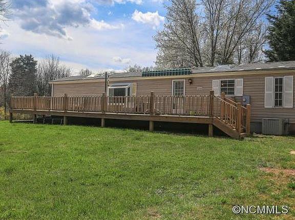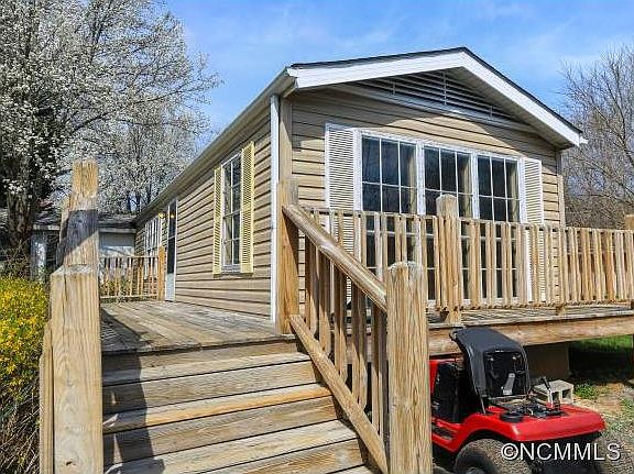 Investment Property! Mobile on 1.97 Acres, currently set up as 2 individual rentals. 2BR, 2 Full Baths - One Unit with kitchenette, bedroom and bath. Other side with full kitchen, living room, bedroom, sunroom/playroom, bedroom. Both have separate entrances or use as one home. Large 51 foot back deck with private large back yard. 2 Storage Units on Property 12 x 16 and 15 x 12.5 Old barn type unit. Private area, but convenient to Asheville.