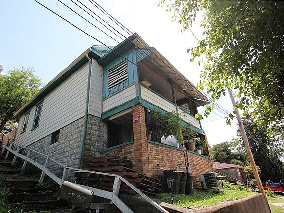 Great starter, flip or investment opportunity. Needs work but lots of space and potential. Large kitchen with high ceiling and beautiful built-in corner cabinet. Two main-floor bedrooms (one currently being used as a dining room) -- master has built-in shelving. Third bedroom in finished attic with additional captive storage space. Basement is partially finished as gameroom and potential fourth bedrooom. Pgh potty in basement. Two covered front porches accessible from living room and basement. Lovely rear patio off kitchen. Large uphill yard with parking on street at top.