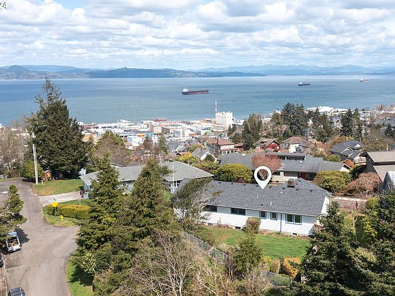 With an ideal location and recent improvements, this Mid-Century home, positioned at the top of the hill in Astoria poised to be your next obsession. Featuring views of the Columbia River that extend to Washington State and thoughtful design elements throughout. This home is strategically positioned to embrace northern views, while maximizing southern light, providing a warm, inviting ambiance throughout. All of this, and covered parking, a fenced in back yard, recent exterior paint, newer roof, refinished wood floors and restored primary en suite bathroom. Downstairs is an additional 765 square foot finished daylight basement, with a sliding glass door leading to the exterior. This is your chance to live close to everything Astoria has to offer, call your agent to book a showing today.