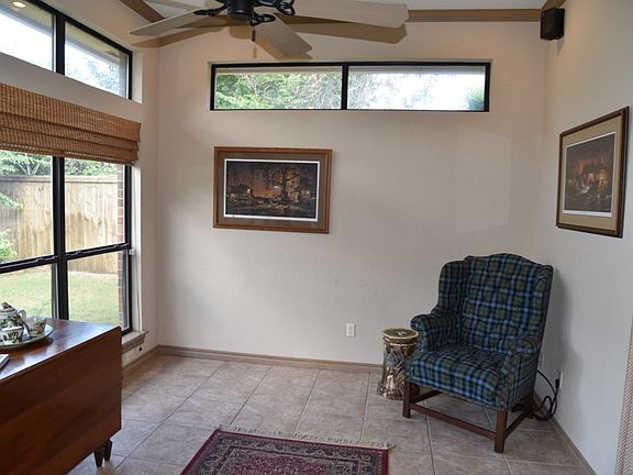 Beautifully maintained well manicured custom built home with lovely front entry landscaping. This is a rare opportunity to own property on an interior lot in River Chase. Very versatile floor plan with Built-in Safe Room, 2 beds, 2 baths, 2 living spaces, dining area, office area and offers a great flow for family and social gatherings. New roof in 2013. This custom home was soundly constructed offering tile floors throughout, many built-ins, and numerous windows providing wonderful natural light. Besides the open airy floor plan, the bonus that comes with this home is out the back patio door. The HOA takes care of all lawn maintenance (front & back). The community has a pool and clubhouse available to use. Your home has plenty of space. Open concept living with a breakfast bar and eating area right off the living room. This home is in the highly sought-after McKinley school district. Your Location is close to the Trails Golf Club, OU Law School, OU main campus, and has easy access to I-35. Beautiful custom home on 1 level. All tile floors. Split plan, lots of windows, formal dining or office. Custom pantry, woodwork, bookcases, and ceiling fan. Oversized garage with built-ins and heavy duty garage door. High ceilings. Large kitchen with center island and huge bar. Beautiful remote-controlled rock fireplace, covered patio; sitting area off master. Walk-in shower and sprinkler system.