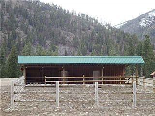 Level 5 acres fenced for horses with horse barn and loafing shed. Well 35 GPM, is in and has 2 frost free hydrants. Well pump installed. Electric service is in, Missoula Electric Coop. There is a pedestrian easement along the north boundry of tract 6A to access Rock Creek provided to the owner of subject property. Easement is recorded and runs with the land. Sanitation restrictions have been lifted by Granite county.