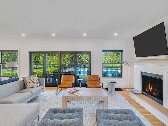 Perfect for large families or friend groups, you are sure to feel right at home and away from the monotony of daily life. Inside, discover a distinct farmhouse charm with a contemporary twist that perfectly blends to exude luxury style, warmth, and comfort. The spacious Great room makes for the perfect gathering space with a large smart TV, oversized windows, rich white oak floors and fireplace. Through the glass sliding doors, allow open air living with ease and effortlessly access the lovely backyard. Delight your inner chef with delicious meals while still socializing with friends in the sparkling white eat-in kitchen featuring a center island, premium appliances, quartz countertops and a wine refrigerator. When you seek a place to refresh and renew, head to the main level Primary suite equipped with private backyard access, large closets and an ensuite bath for spa-quality calm. Upstairs, there is a second Primary suite featuring a balcony and Carrera marble ensuite bath in addition to two remaining relaxing bedrooms, hallway bath and second family room for additional living. Work from home in comfort with two office spaces for remote work.Head outdoors to enjoy your private oasis including an oversized 18x36 heated, saltwater pool with lounge seating plus an expansive deck for dining alfresco-style. Relax one evening under the stars with a picnic or sip cocktails as you lounge by the pool. When you're ready to explore, tap into that inner wine and food enthusiast as you are just minutes to world-class wineries and fine cuisine plus a stellar variety of local boutiques. Over 40 vineyards line the North Fork in addition to the beautiful beaches of Veterans and Baillie Beach making a visit to this town much more than meets the eye.