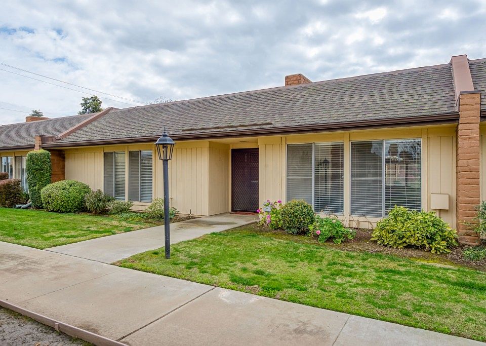 Clovis Condo. Spacious almost 1900 square foot, single story with a fantastic 2 car deep garage! Featuring 3 bedrooms and 2 bathrooms in a rarely available community, near Sunnyside Country Club. Storage oh yes, you'll find a large linen closet, pantry, closets in the hallway, two walk-in closets in the master bedroom and even more storage in the gigantic living room. Great floorplan with 2 hallways for convenience, one with hardwood flooring. New carpet installed in the living room and hallway at time of listing. Nice wetbar with sink and shelving is another added feature located in the living room. Kitchen Nook area with windows to let sunshine in and to overlook the backyard space. Isolated main bedroom with newly remodeled shower & flooring in ensuite bathroom. Backyard surroundings are a pleasant surprise with an atrium type area, plus patio and lawn. Well maintained grounds with only 24 units in complex. Guest parking in middle of complex near pool. HOA covers cost of water, sewer, garbage, front & backyard landscaping, community pool & gathering area. Located toward back of complex, not near the street. Near grocery stores, shopping, pharmacy, and many restaurants.