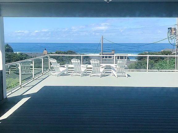 Oceanview Home with finished 2+ Car marine garage and additional guest house. Watch whales and Ocean surf from rooftop Trex deck and covered patio with expansive views. Living room with gas fireplace, beam ceilings and panoramic views, adjacent to master bedroom with en-suite bath and door to oceanview balcony. Chef's kitchen with new KitchenAid stainless appliances. Huge family room with 10 ft. coffered ceilings, perfect for media room. The finished garage is fully functional as a large garage, but is really an extension of the home, used as a recreation room. Open the 10 ft. garage doors for sounds of the surf and a coastal breeze. Extra large fully fenced lot with newly finished lighted fence and security gate. Plus bonus 1000 sq. ft cozy rental with some ocean views, close to beach...This second unit is on the ground level and would be great for extended family or pay half the mortgage with $900 a month rental. All this and you are just 1/4 mile to Yaquina light house State Park, Beach Access to Jetty and miles of beach to walk on. 1/2 mile to Newports Bayfront, Nye Beach shops and restaurants or the Newport Marina and Boat Launch. This is a Legal duplex in R2 zoning and Works as a family home, investment property or vacation rental. keep one side rent the other. New storage shed in 2018. New IB membrane roof with 15 year transferable warranty.