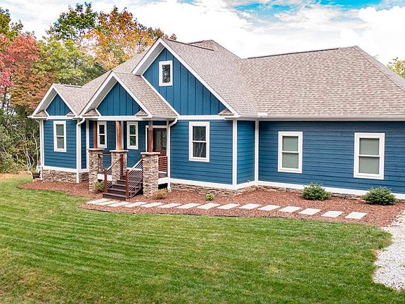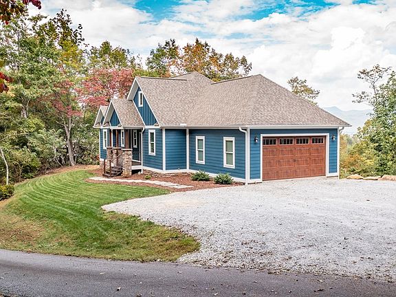 Only 3 years old in a quiet wooded upscale subdivision only minutes from town. Walking in the front door you are standing on beautiful maple wood floors & you can see straight thru from the foyer to the wall of windowed doors leading to the back porch & a beautiful long range mountain view. The living/ dining/ kitchen area are open concept with vaulted ceilings in the living area and a stone gas log vented fireplace w/ a blower for those cool mountain evenings. An island divides the kitchen & living area w/ breakfast bar seating. The master bedroom has a wall of large windows to enjoy that mountain view & great master en-suite w/ a soaker tub to relax in, large tiled shower, water room, double walk in closets and its own hot water heater. Also on the main level is a guest room and half bath. Down the open stairway in the living area past the shiplap wall to the finished basement and you are in a large family room, again with lots of glass to take in that view. There is another bedroom, a full bath plus a bonus room on this level. There is also a large storage/ utility room in the lower level. The front & back porch have Trex decking for years of maintenance free enjoyment.